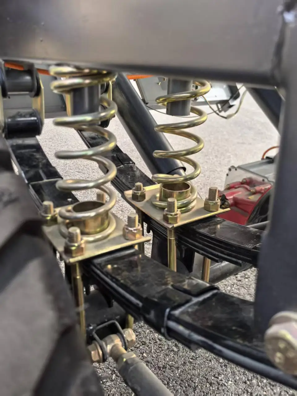 - Shock absorption:It adopts a double helical spring and double leaf spring design, providing a stronger shock absorption effect and load-bearing capacity.